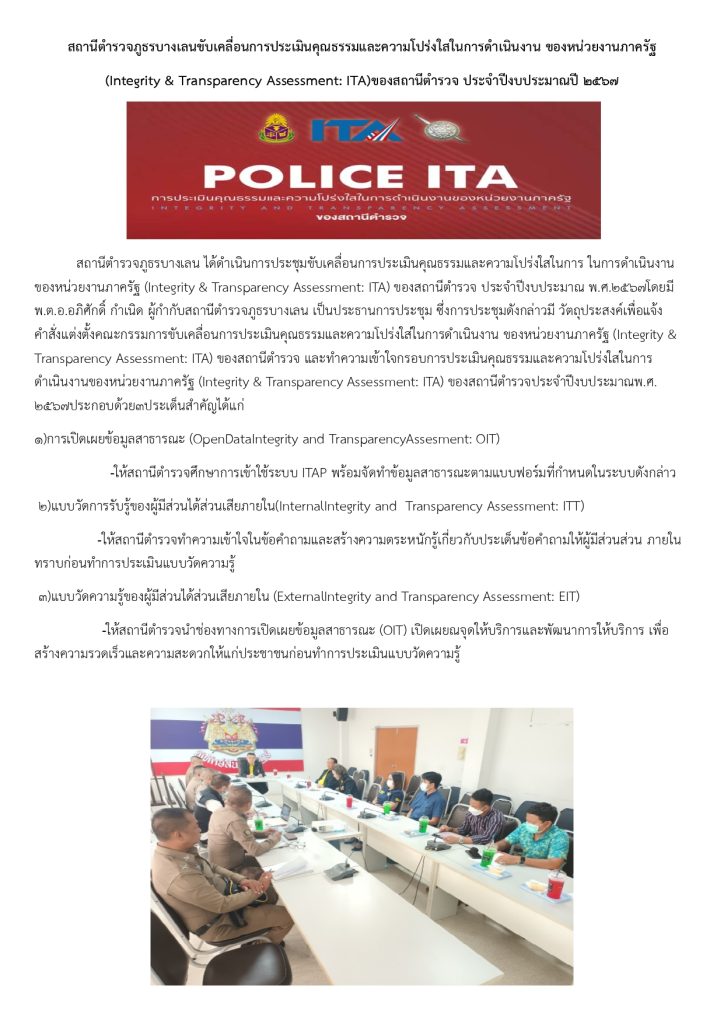 การประชาสัมพันธ์ข้อมูลผลการดำเนินงานของหน่วยเรื่องการประเมิน ITA ปีงบประมาณ 2567