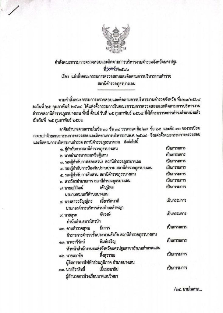คำสั่งแต่งตั่งคณะกรรมการตรวจสอบและติดตามการบริหารงานตำรวจ (กต.ตร.)